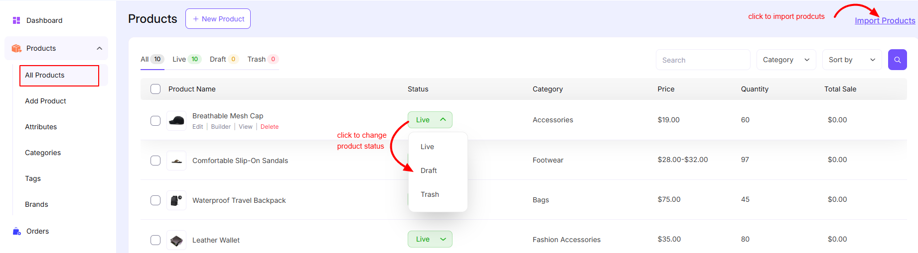 EasyCommerce → Products → All Products