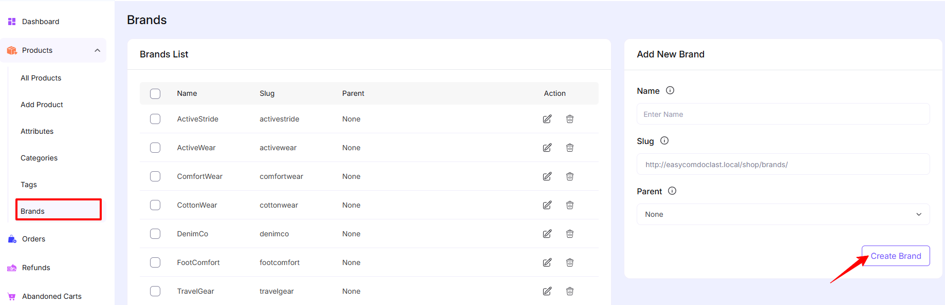 The Brands feature in EasyCommerce allows you to organize products by manufacturer, label or identity. It helps customers easily browse products based on brand preference and improves product filtering and discovery.