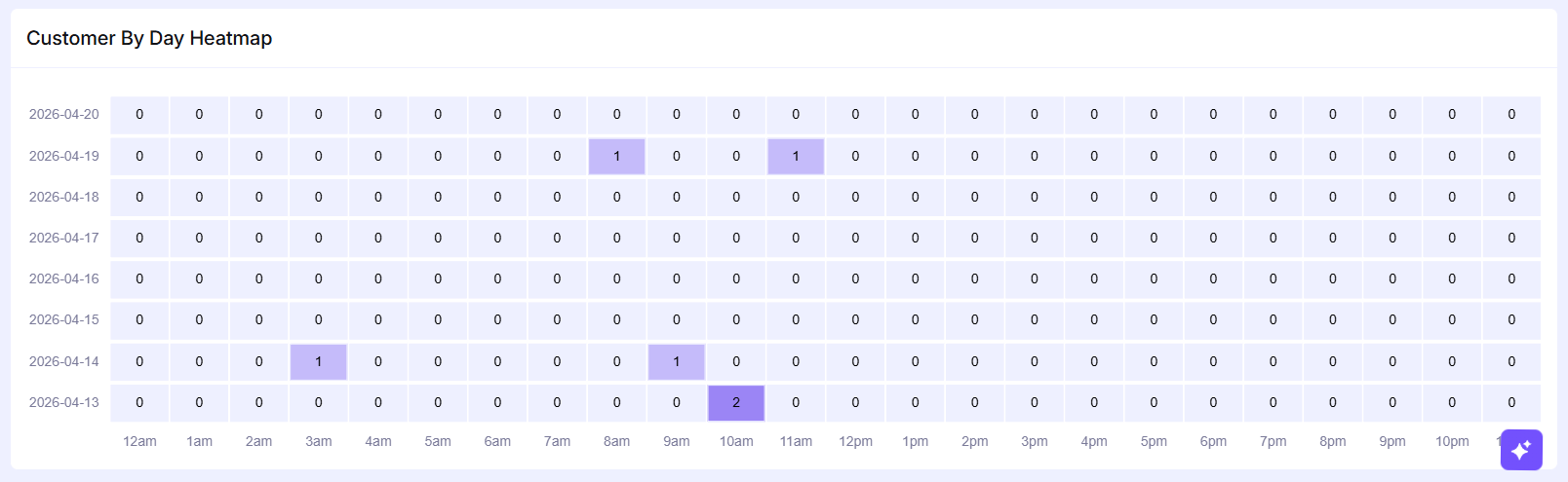 The heatmap gives a daily and hourly breakdown of customer activity.