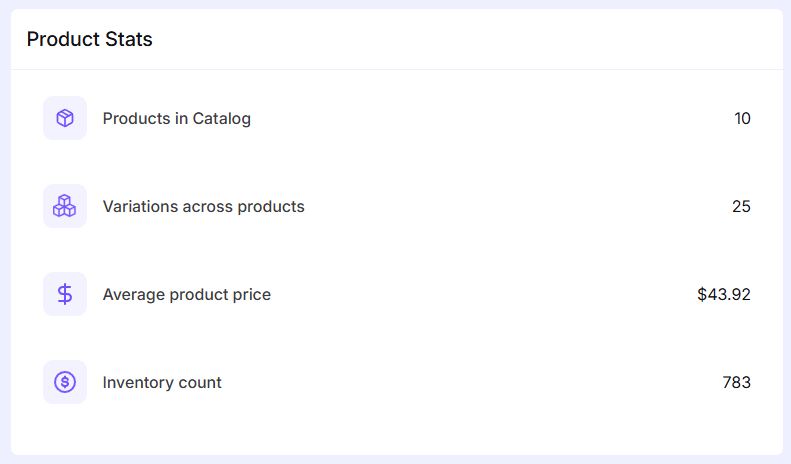Each card also shows a comparison with the previous period, so you can quickly tell if things are improving or dropping.